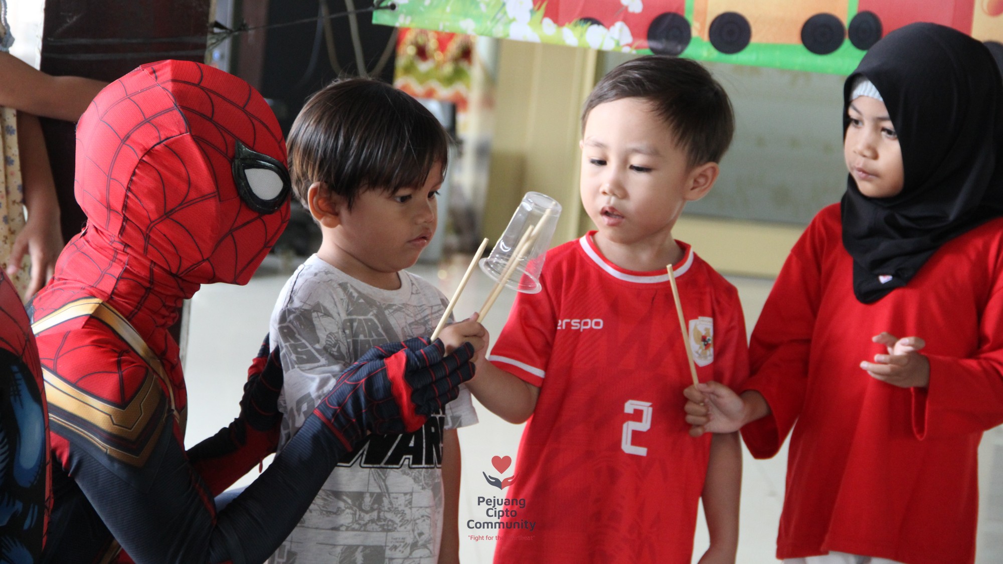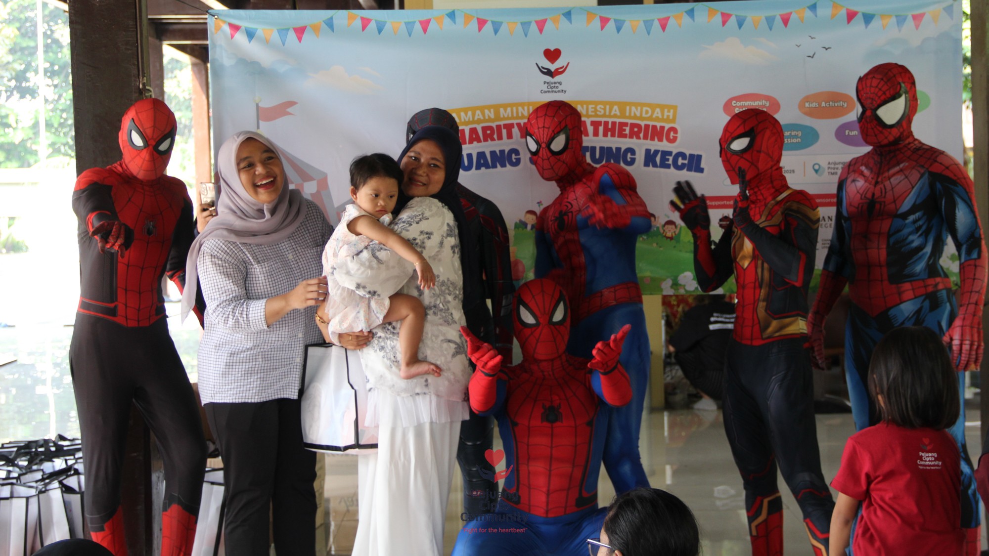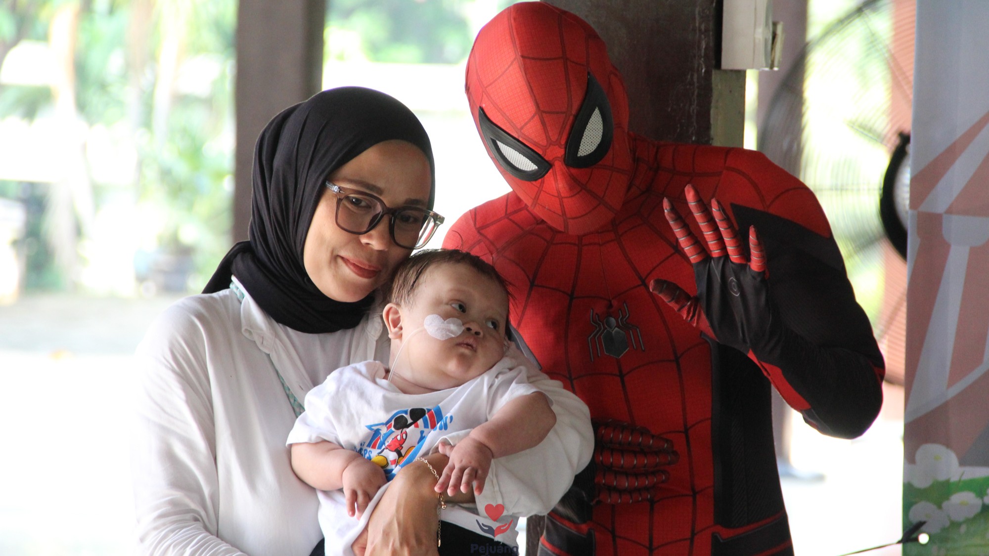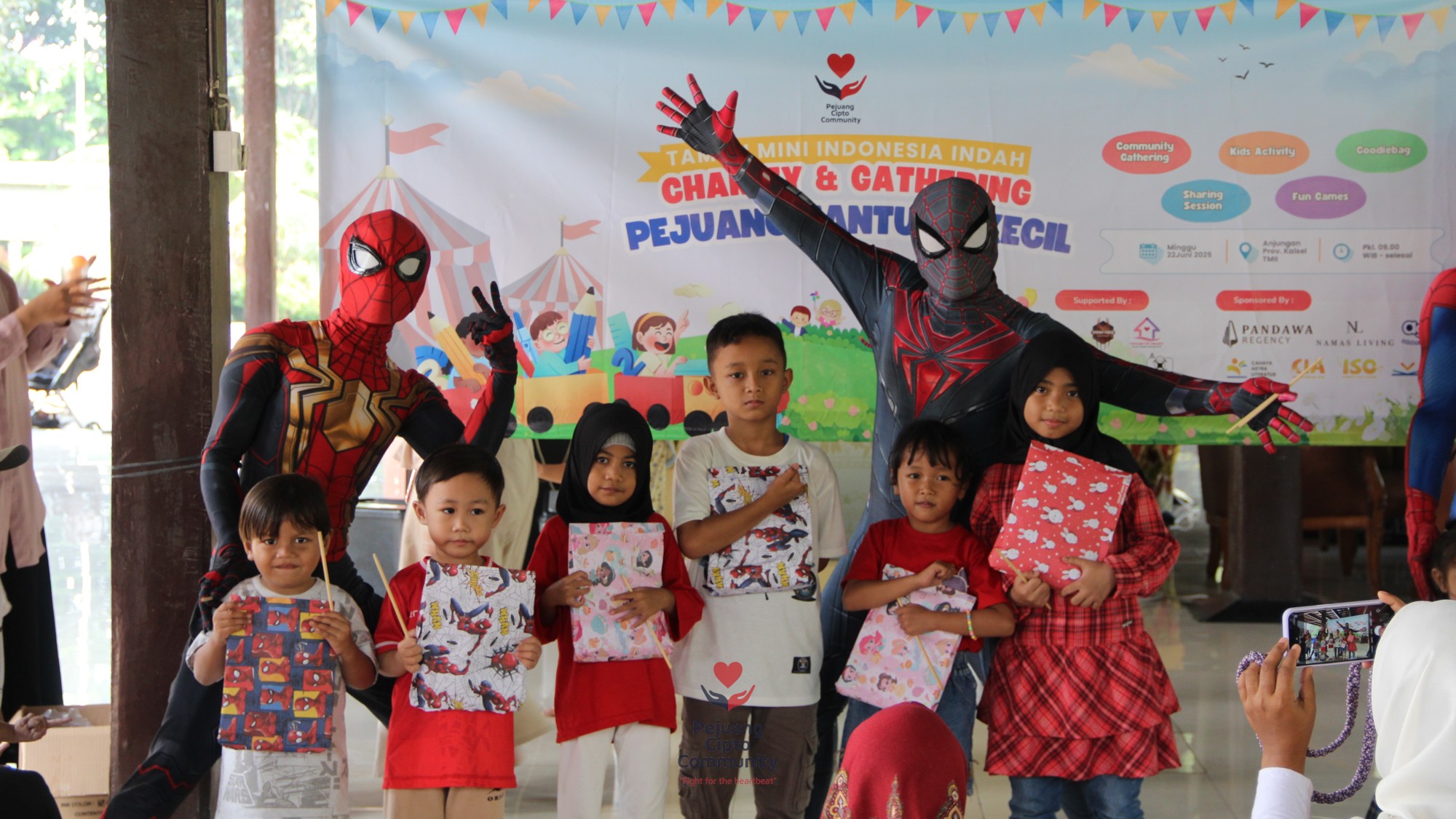 Acara menjadi semakin meriah ketika Spiderman muncul! Superhero idola anak-anak itu bukan hanya berpose, tapi juga bermain dan membagikan hadiah—membuat mata para pejuang kecil itu berbinar, seolah-olah lupa sejenak akan perjuangan medis yang mereka lalui.