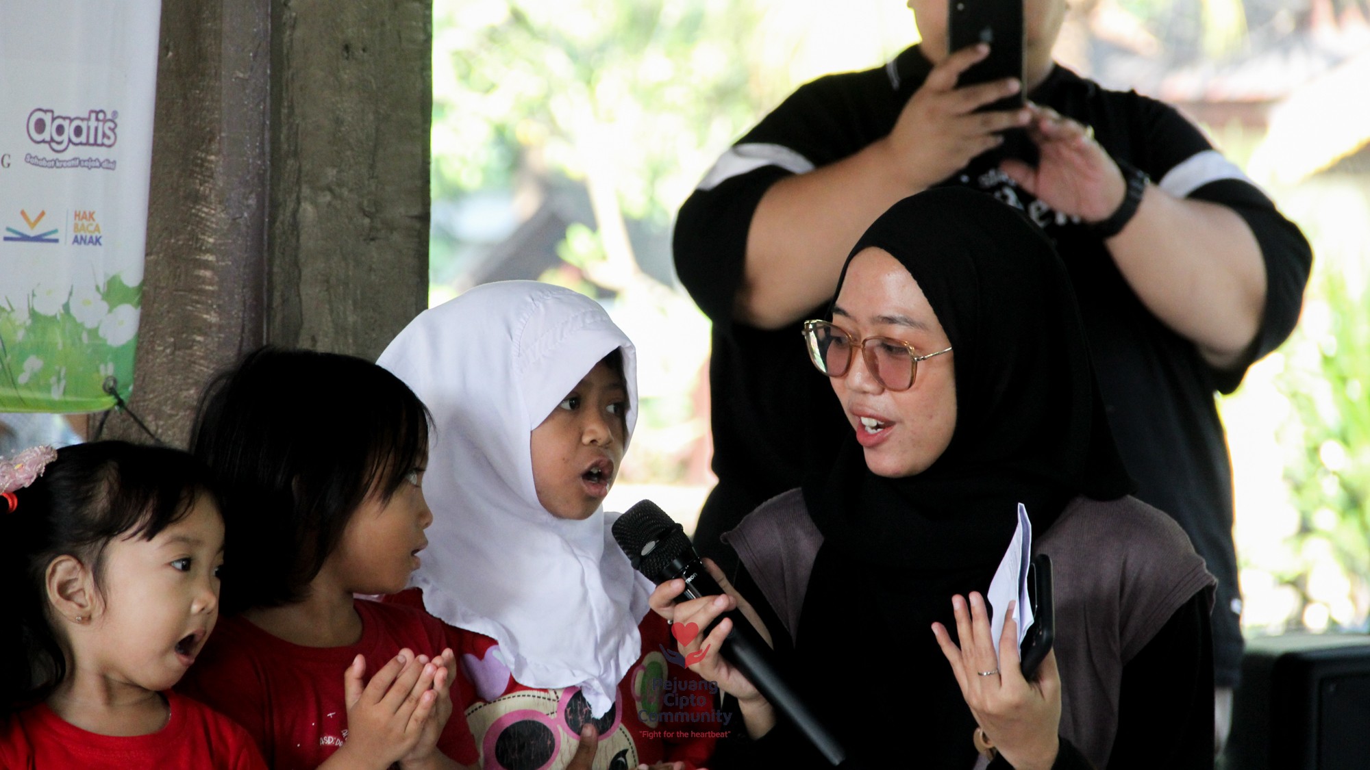 Acara berlanjut ke area utama yang berada di kolong rumah adat—tempat penuh cinta dan makna. Setelah proses registrasi ulang dan pembagian makan siang, acara resmi dibuka dengan doa bersama. Menyentuh hati, para pejuang kecil yang sudah bisa memimpin doa diajak maju ke depan. Dengan suara lirih namun yakin, mereka memohon kekuatan, kesehatan, dan keberkahan. Bagi yang berani maju, panitia telah menyiapkan hadiah sebagai bentuk apresiasi atas keberanian mereka.